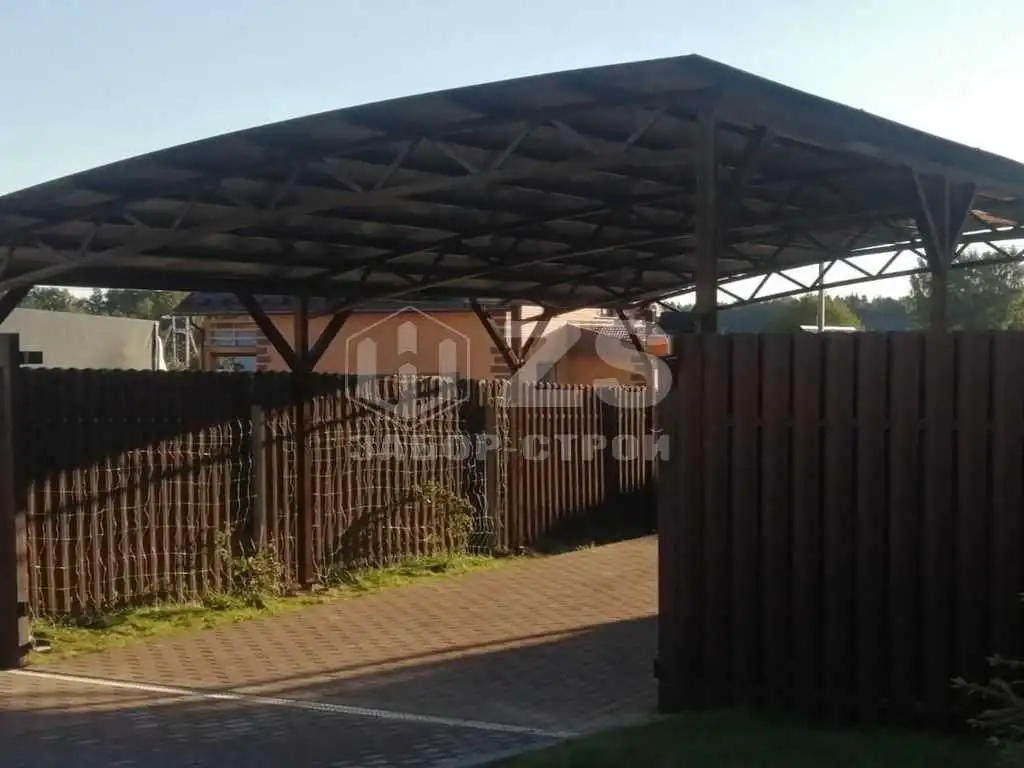 Стандартные характеристики каркаса навеса: столбы 80х80х3мм.