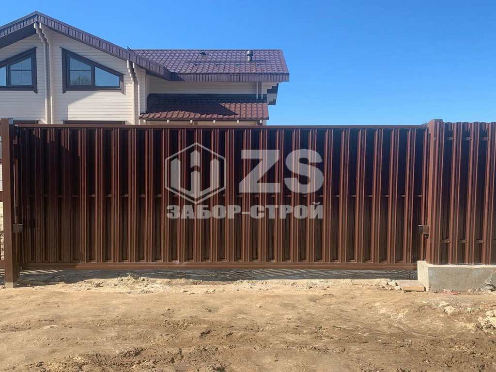 - Забор на ленточном фундаменте из евроштакетника 45 метров