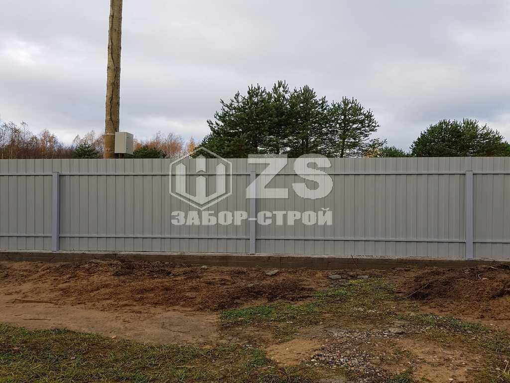 - Забор на ленточном фундаменте из профнастила 65 метров
