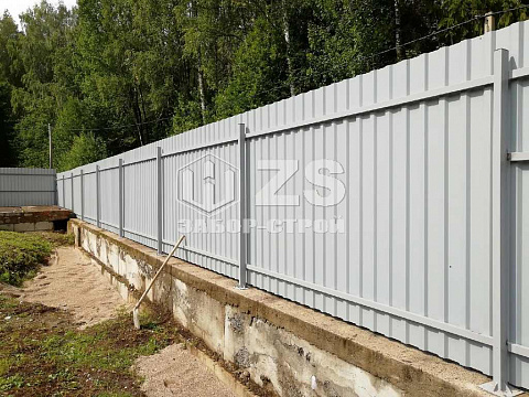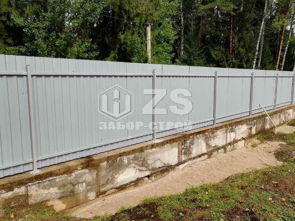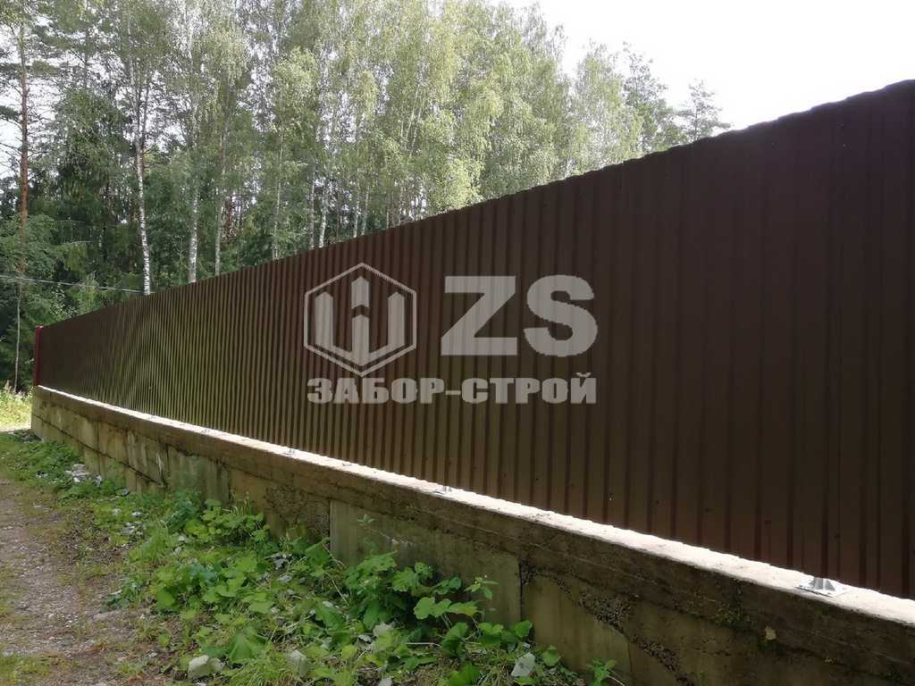 - Забор на ленточном фундаменте из профнастила 8 соток