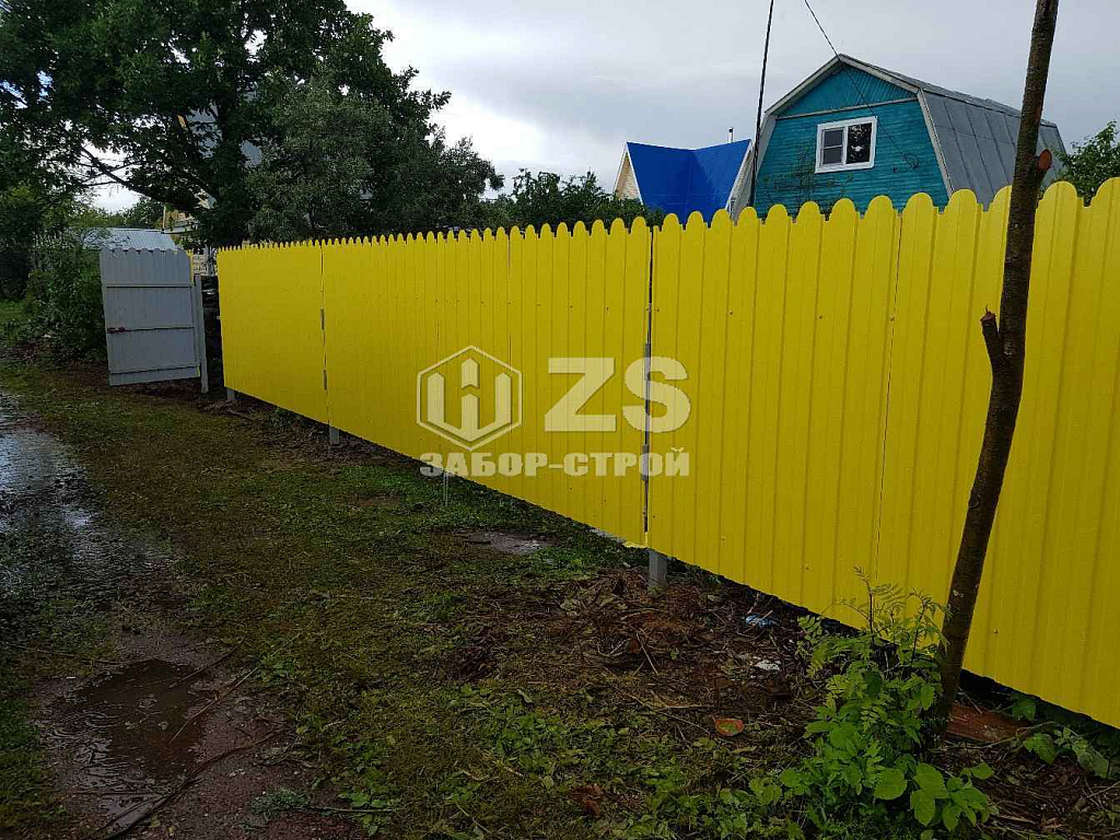 - Забор на забивных столбах из профнастила 30 метров